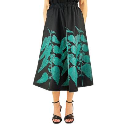 Gonna sartoriale realizzata in cotone 100% di alta qualità. Splendida stampa all-over con ortiche. Lunghezza midi con elastico in vita. Realizzata su misura, serigrafata a mano, made in Italy.